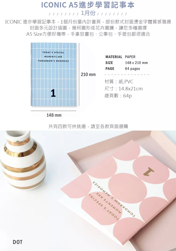 博客來e-coupon ICONIC A5進步學習記事本(單月份)-Dot